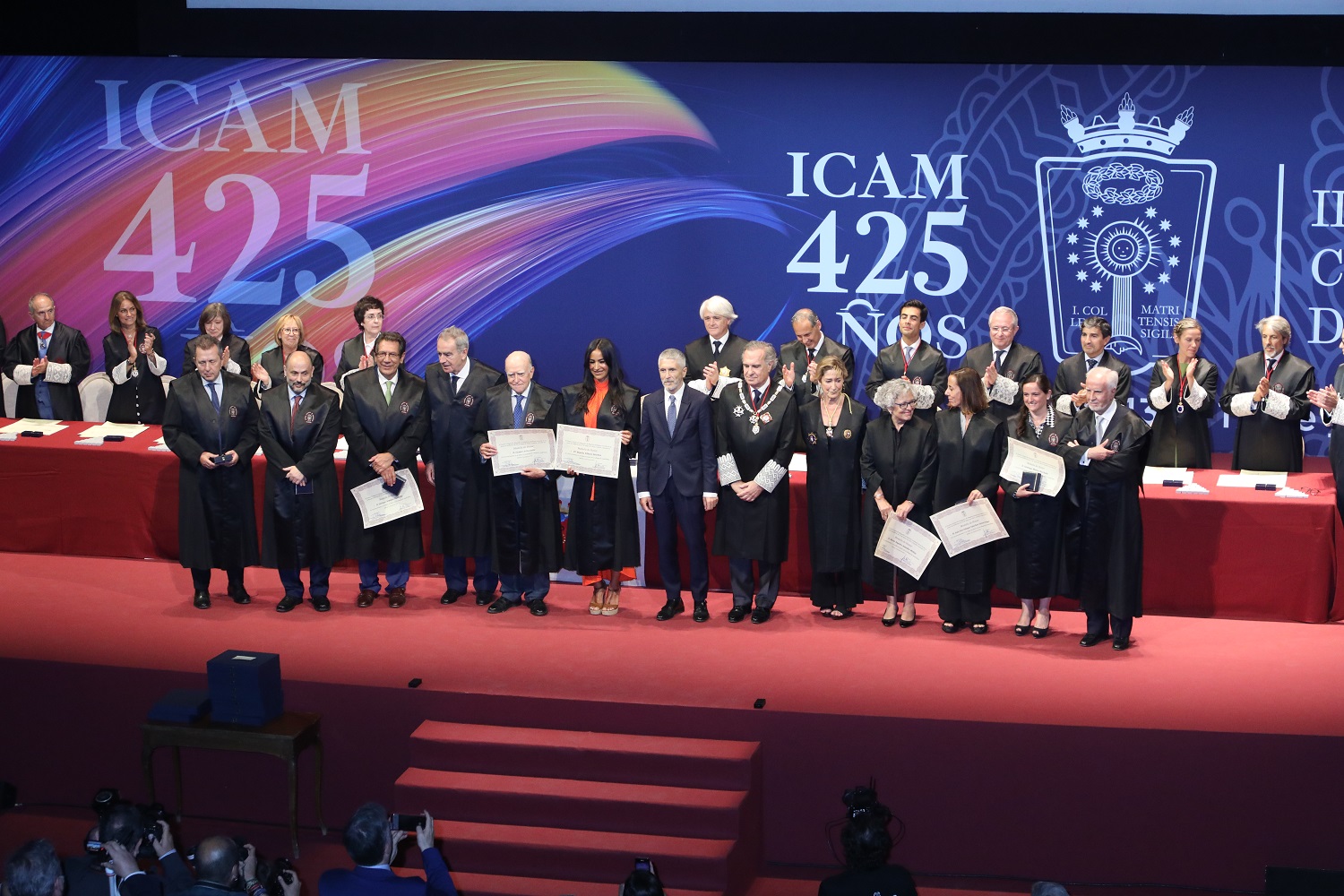 Durante el acto, en el que ha participado el ministro del Interior, Fernando Grande-Marlaska; la presidenta de la Abogacía, Victoria Ortega; los decanos de la Abogacía de Barcelona y Málaga, Jesús Sánchez y Salvador González Martín, respectivamente; y otras autoridades políticas y judiciales, la Abogacía madrileña también ha entregado su Medalla de Honor a 11 colegiados en reconocimiento a sus méritos o servicios, desde magistrados del Tribunal Constitucional a abogados del Turno de Oficio, pasando por el director de la RAE o la vicealcaldesa de Madrid.