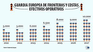 El cuerpo deberá contar con 5.000 guardias en 2021, para aumentar a 10.000 en 2027. La agencia dispondrá además de una reserva de reacción rápida para intervenciones de emergencia en las fronteras, con 1.500 guardias aportados por los países.