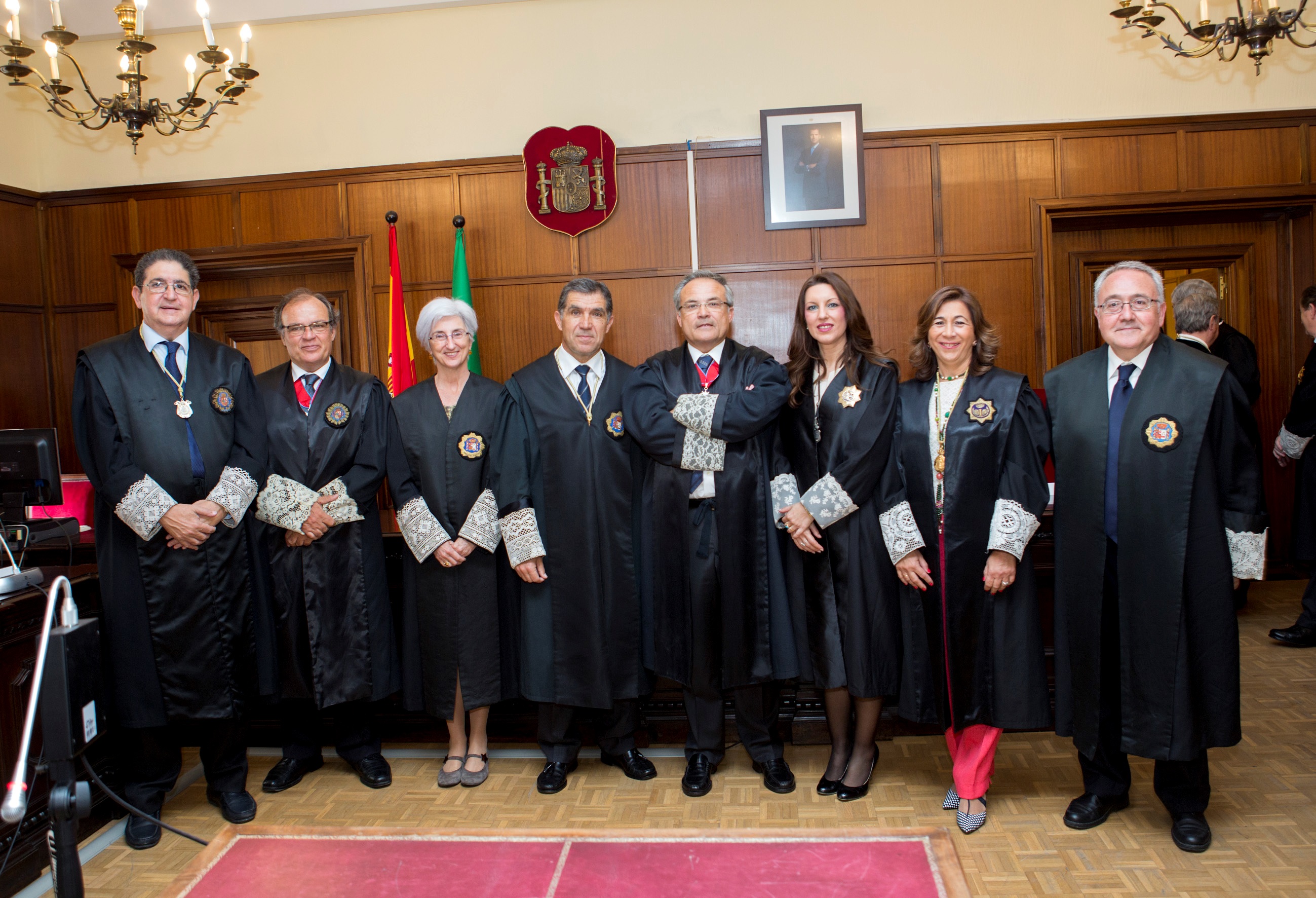 En la imagen el homenajeado con diversas autoridades asistentes al acto. De izquierda a derecha el decano del Colegio de Abogados José Joaquín Gallardo, el magistrado Víctor Nieto, la fiscal jefe María José Segarra, el presidente del TSJA Lorenzo del Río, el condecorado Joaquín Maroto, la decana de los procuradores Isabel Escartin, la secretaria coordinadora Auxiliadora Duque y el juez decano de Sevilla Francisco Guerrero.