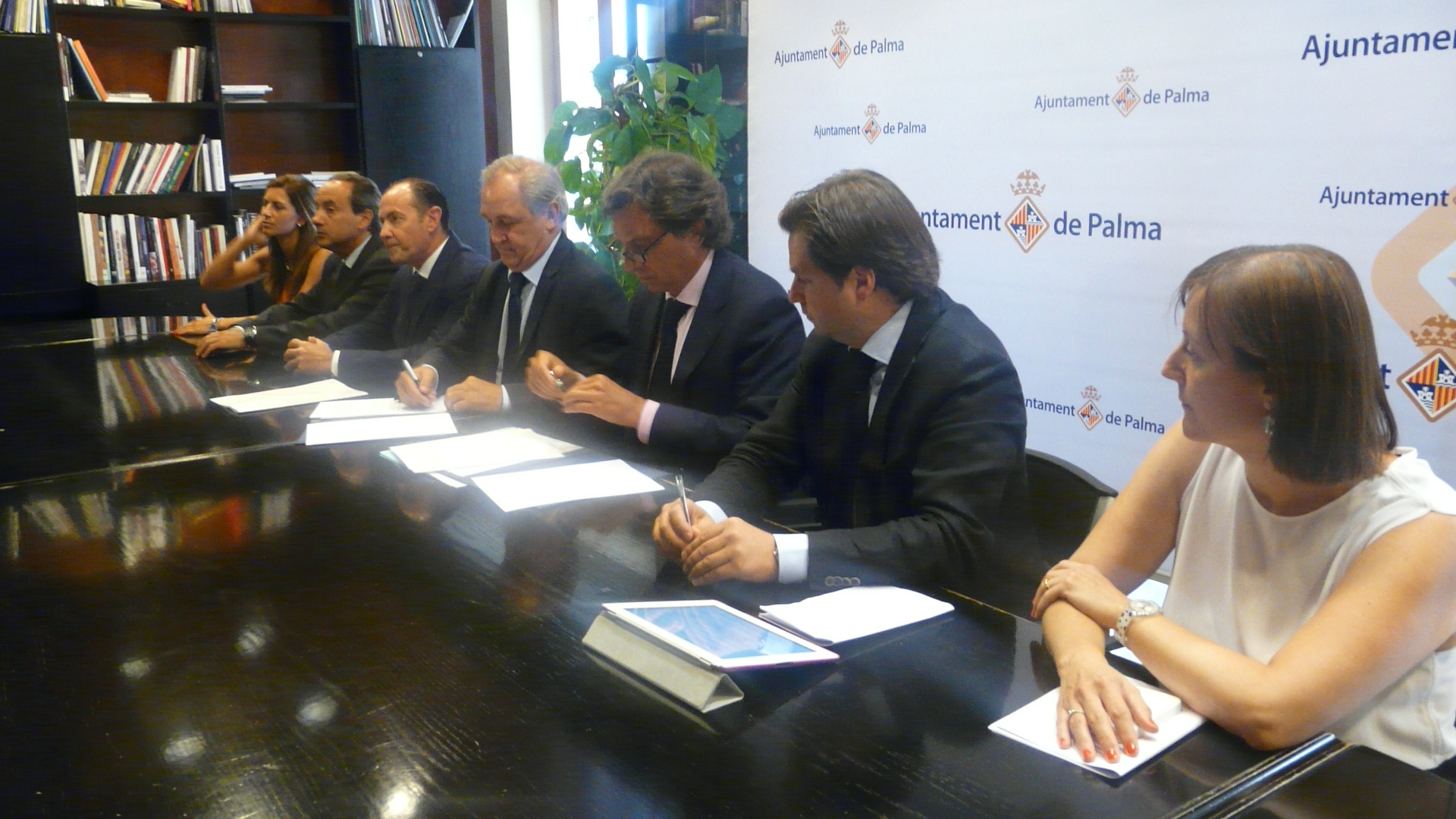 El alcalde de Palma, Mateo Isern, y el decano del Colegio de Abogados de Baleares, Martín Aleñar, han firmado esta mañana un convenio de colaboración para poner en marcha el próximo mes de septiembre, una Oficina Municipal de Intermediación Hipotecaria (OMIH) destinada a ayudar a las personas y a las familias que se encuentren en serio riesgo de perder su vivienda habitual por sus dificultades para hacer frente al préstamo hipotecario.