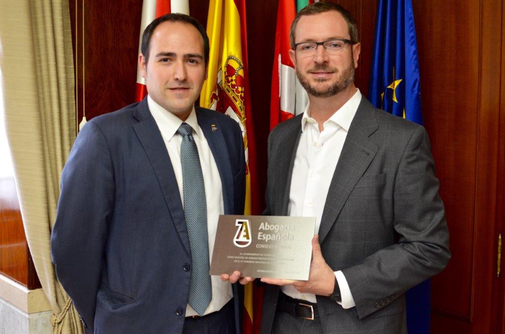 El decano del Colegio de Abogados de Álava-Araba, Javier García Pascual, entregó el 2 de junio al alcalde de Vitoria-Gasteiz, Javier Maroto, una placa conmemorativa en agradecimiento a la colaboración del Ayuntamiento de la capital alavesa en la organización y desarrollo del XI Congreso Nacional de la Abogacía Española, celebrado en Vitoria-Gasteiz del 6 al 8 de mayo.