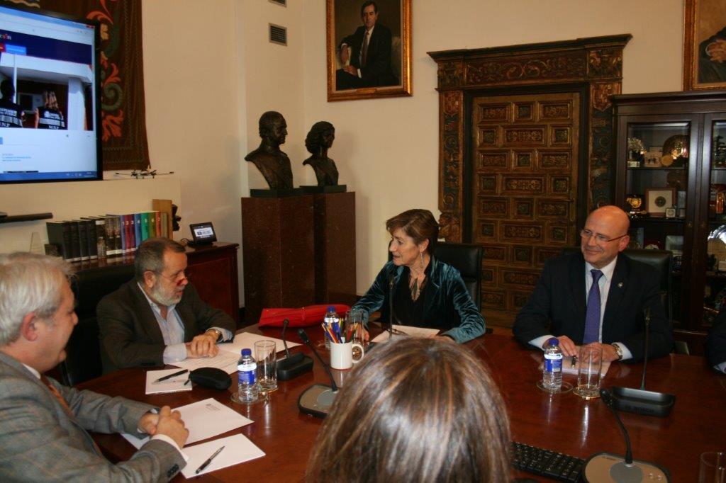 La presidenta del Consejo General de la Abogacía Española, Victoria Ortega, junto con el presidente de la Subcomisión de Extranjería de la Abogacía, Blas Jesús Imbroda, y el secretario general técnico del Consejo General de la Abogacía, Pablo Zapatero, se ha reunido con el Defensor del Pueblo en funciones, Francisco Fernández Marugán, en la sede del Alto Comisionado de las Cortes Generales.