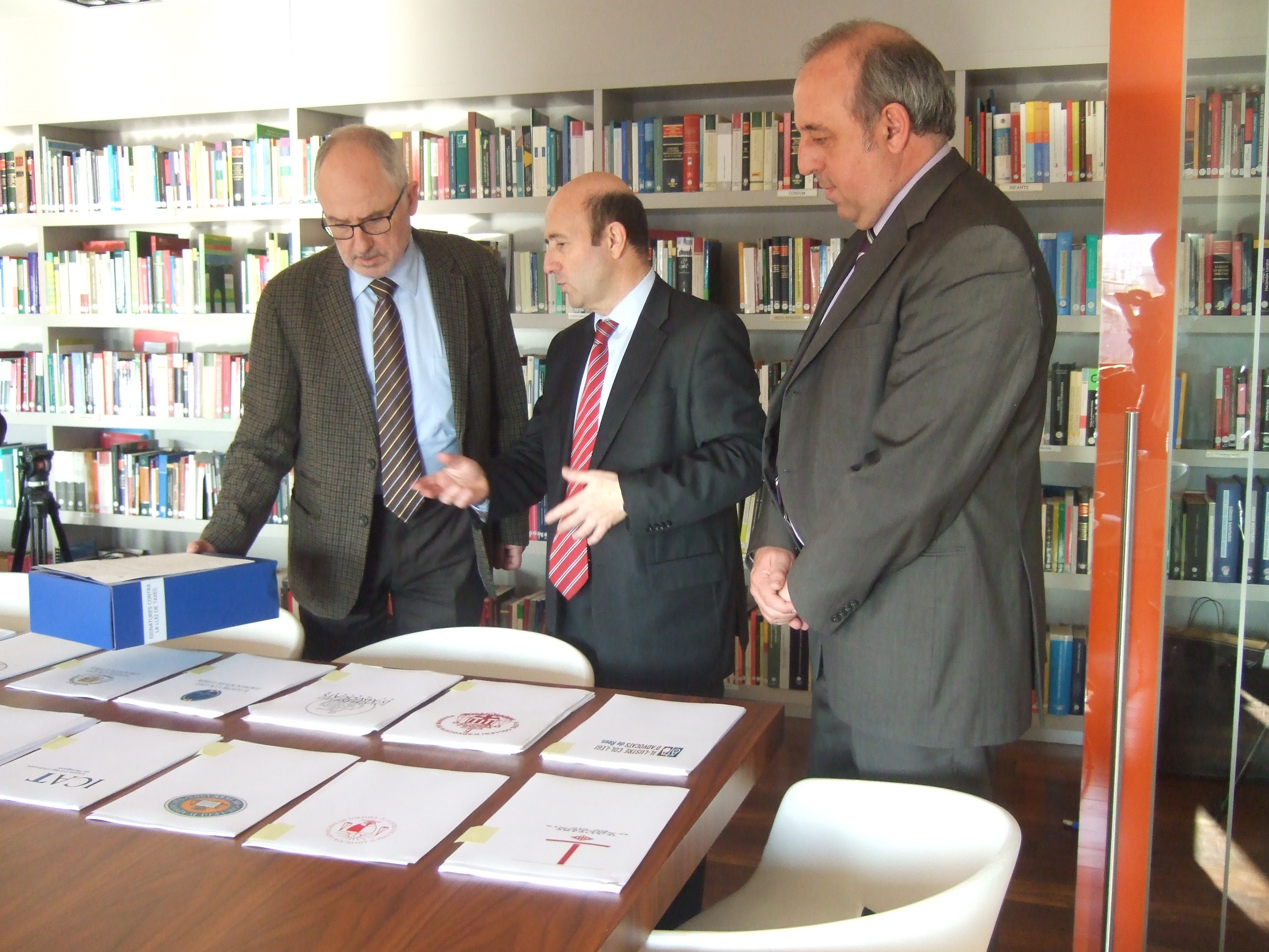 El presidente del Consell de l’Advocacia Catalana, Pedro L. Yúfera, ha entregado esta tarde un total de 11.399 firmas al Síndic de Greuges, Rafael Ribó, que los catorce Colegios de Abogados de Cataluña han recogido en contra de las tasas judiciales. La Abogacía considera desmesurada la tasa estatal que se exige para poder interponer un procedimiento judicial y denuncia que la Ley de Tasas Judiciales vulnera uno de los derechos más fundamentales del ciudadano: el derecho a la tutela judicial efectiva.