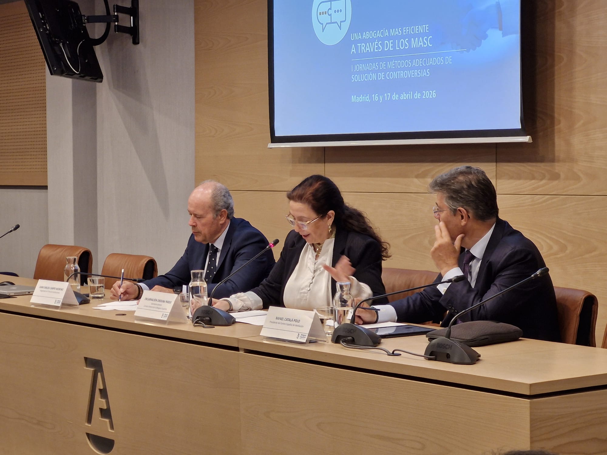 En el encuentro, celebrado desde ayer en la sede de la Abogacía, se ha analizado el impacto de los MASC en el primer año de la Ley de Eficiencia del Servicio Público de Justicia. González ha remarcado que “somos expertos en apostar por la vertiente conciliadora frente a la litigadora, porque no hay mejor litigio que el que se evita”.