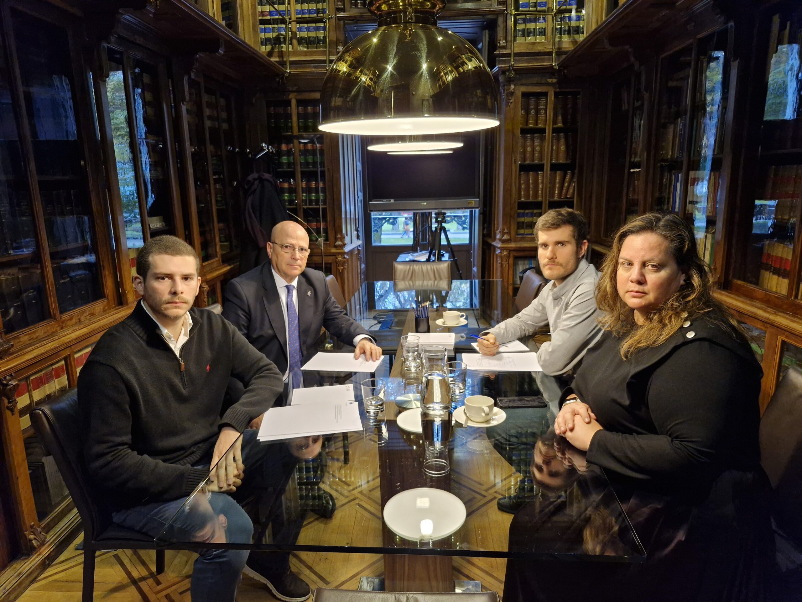 Blas Jesús Imbroda, decano del Colegio de Abogados de Melilla y presidente de la subcomisión de Derecho de Extranjería y Protección Internacional, Berta Álvarez y Gonzalo Sáenz de la Fundación Abogacía y Derechos Humanos han mantenido una reunión de trabajo con Santiago Rocha, hijo del abogado, donde han conocido los detalles sobre el estado de detención arbitraria en el que se encuentra su padre dentro de las instalaciones del edificio “El Helicoide” en Caracas, sede del Servicio Bolivariano de Inteligencia Nacional de Venezuela.