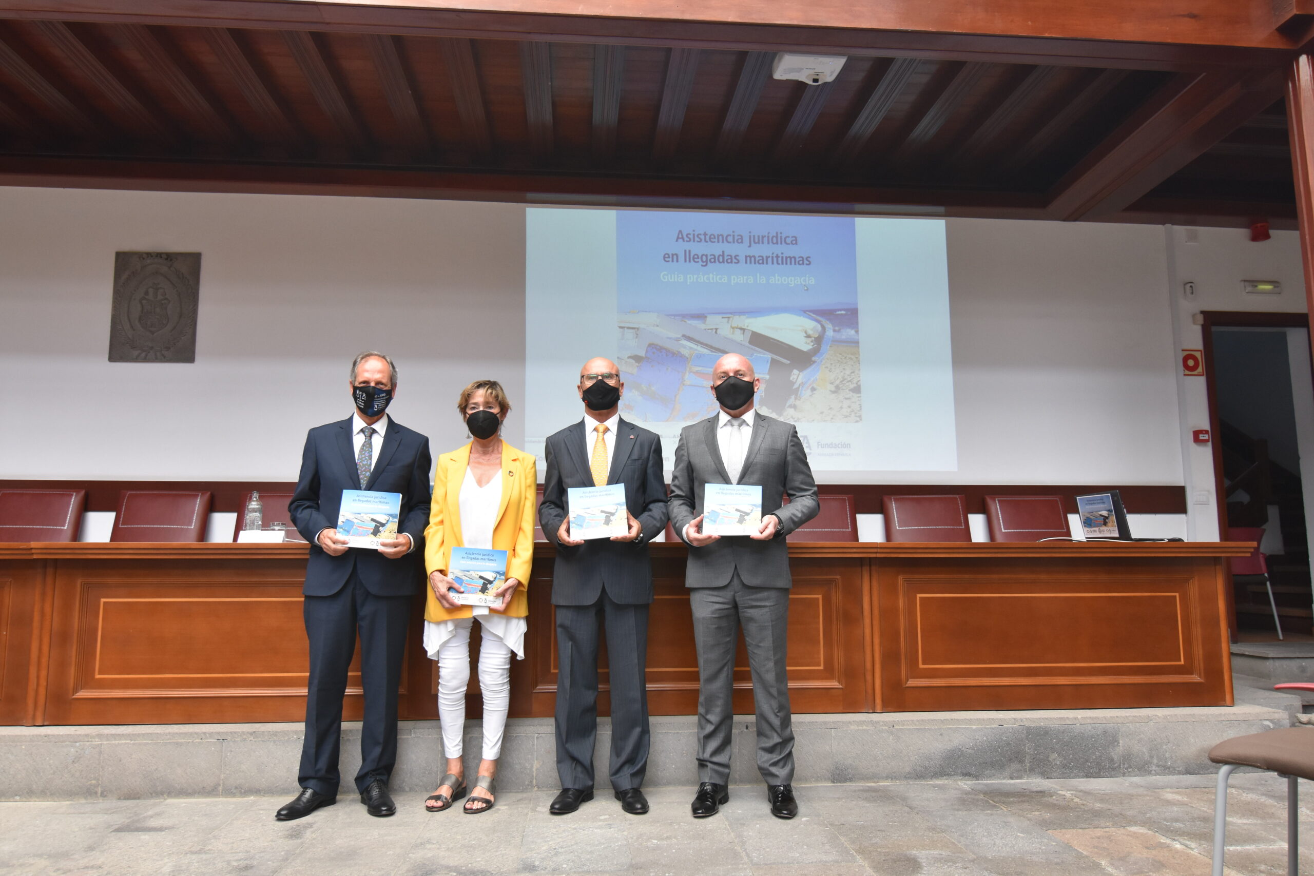 La presidenta del Consejo General de la Abogacía, Victoria Ortega, y el decano del Colegio de Abogados de las Palmas, Rafael Massieu, han presentado este jueves, en el Colegio de las Palmas, la Guía Práctica para la asistencia jurídica en llegadas marítimas. Este documento, editado por la Fundación Abogacía y el Consejo General de la Abogacía, tiene como propósito facilitar la labor de abogados de extranjería ante llegadas de migrantes a nuestras costas. En la presentación también participaron, de manera telemática, Blas Jesús Imbroda, presidente de la subcomisión de Extranjería y Protección Internacional del Consejo, así como Fran Morenilla, uno de los autores del documento.