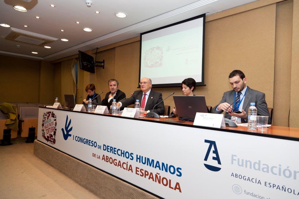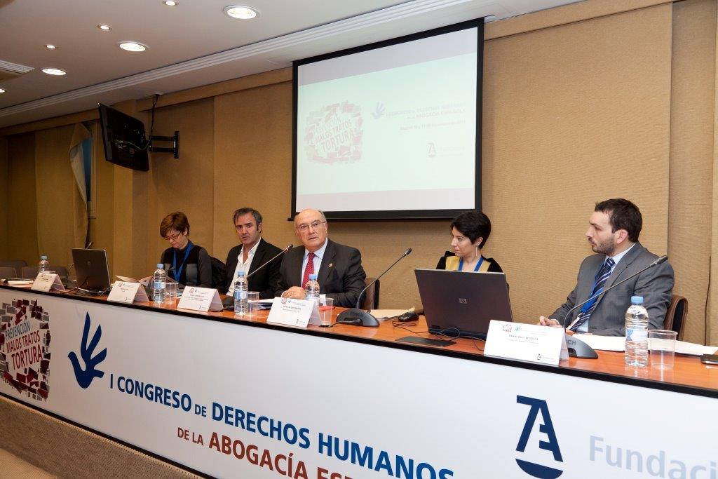La Fundación Abogacía Española organizó, el 10 y 11 de diciembre, el I Congreso de Derechos Humanos de la Abogacía Española que en su primera edición ha estado dedicado a la prevención de los malos tratos y la tortura. Este primer Congreso, celebrado en el marco de la Conferencia anual de la Abogacía que cada año se desarrolla en la semana del 10 de diciembre para conmemorar la declaración Universal de los Derechos Humanos, suscitó tanto interés que muchas personas no pudieron asistir por falta de plazas.