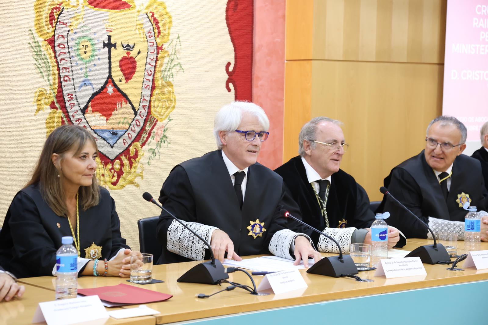 Durante su intervención, González recordó que la distinción se concede en reconocimiento a su compromiso con las instituciones colegiales y su defensa del Estado de derecho. Además, destacó la satisfacción que Cristóbal habría sentido al ver avances recientes en la Abogacía, como la promulgación de la Ley Orgánica del Derecho de Defensa, la aprobación del Reglamento de Amparo Colegial y el papel destacado de España en el Consejo de Europa para la protección de la abogacía.