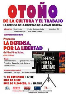 Por otro lado, el próximo 13 de noviembre se hizo una presentación de la película en Pamplona, junto con la Fundación IPES, dentro del Festival de DDHH organizado en colaboración con los Cines Golem. Intervinieron Cristina Almeida, Francisca Sauquillo, Ignacio Fernández Toxo, José Babiano y Pepe Campos. El 14 de noviembre se proyectó en los cines SCREENBOX FUNATIC de Lleida y también contó con la participación del decano, Jordi Albareda.