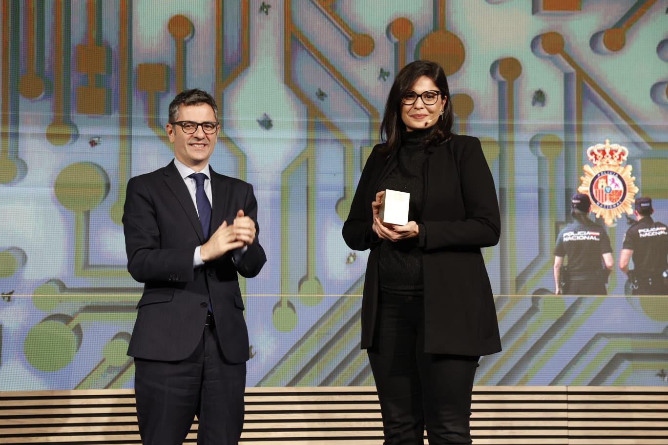 Y el ministro de Presidencia, Justicia y Relaciones con las Cortes Félix Bolaños entregó el galardón a Clara Jiménez Cruz, CEO y cofundadora de Maldita.es.