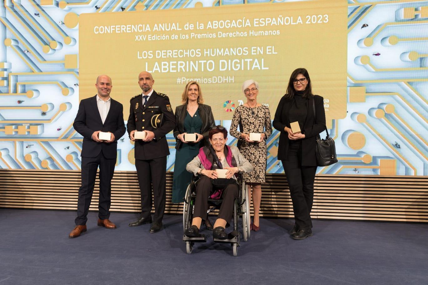 El Consejo General de la Abogacía entregó hoy sus XXV Premios Derechos Humanos, que en esta edición han reconocido el trabajo por la igualdad digital, a la fiscal de Sala de la Unidad coordinadora de Discapacidad y Mayores, María José Segarra, la asociación cántabra “La Columbeta”, los departamentos de Comunicación de la Guardia Civil y de la Policía Nacional y el medio Maldita.es.