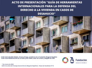 La Fundación Abogacía presenta la guía “Herramientas internacionales para la Defensa del derecho a la vivienda en caso de desahucio”