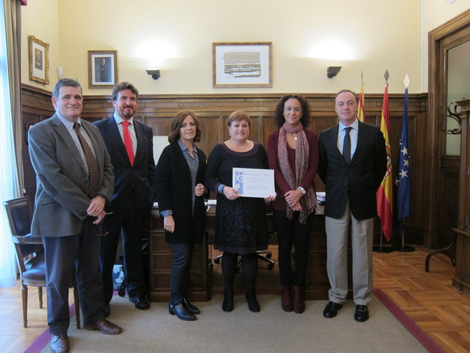 Elena Lechón Fleta ha recibido el premio en la sede del Colegio de Abogados de Zaragoza de manos del decano, Antonio Morán Durán y los responsables de comunicación del REICAZ.