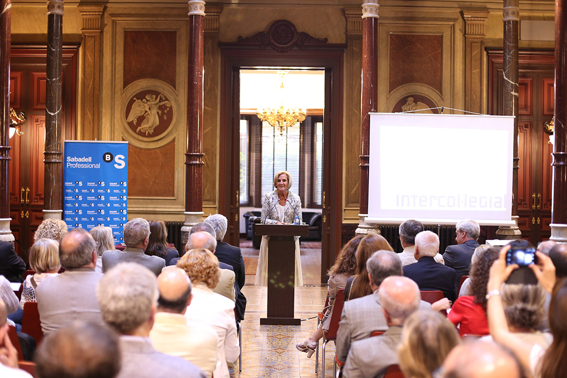 La ‘Associació Intercol•legial de Col•legis Professionals de Catalunya’ ha entregado, en la sede del Colegio de Abogados de Barcelona, la segunda edición del premio de la entidad a la presidenta del Parlamento de Cataluña, Núria de Gispert, en reconocimiento a su trayectoria profesional y a su compromiso en la defensa de los colegios profesionales. La Intercol•legial instituyó este premio en 2013 para galardonar a personas y entidades que se hayan distinguido por su reivindicación del papel de los colegios, a raíz del momento decisivo que viven estas corporaciones.