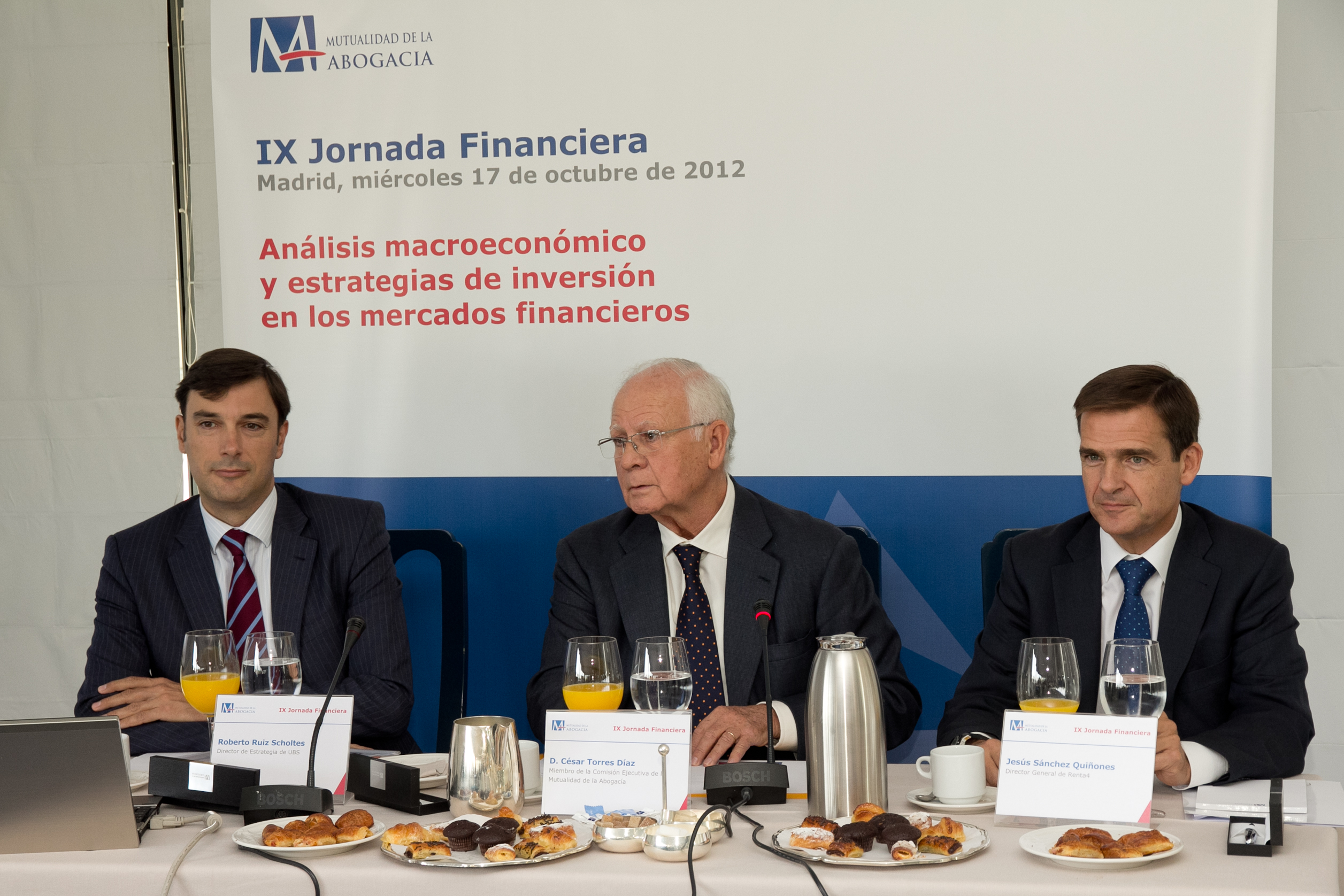 La sesión ha contado con las intervenciones de Roberto Ruiz Scholtes, Director de Estrategia de UBS; Jesús Sánchez-Quiñones González, Director General de Renta4 y Cesar Torres Díaz, Miembro de la Comisión Ejecutiva de la Mutualidad de la Abogacía.