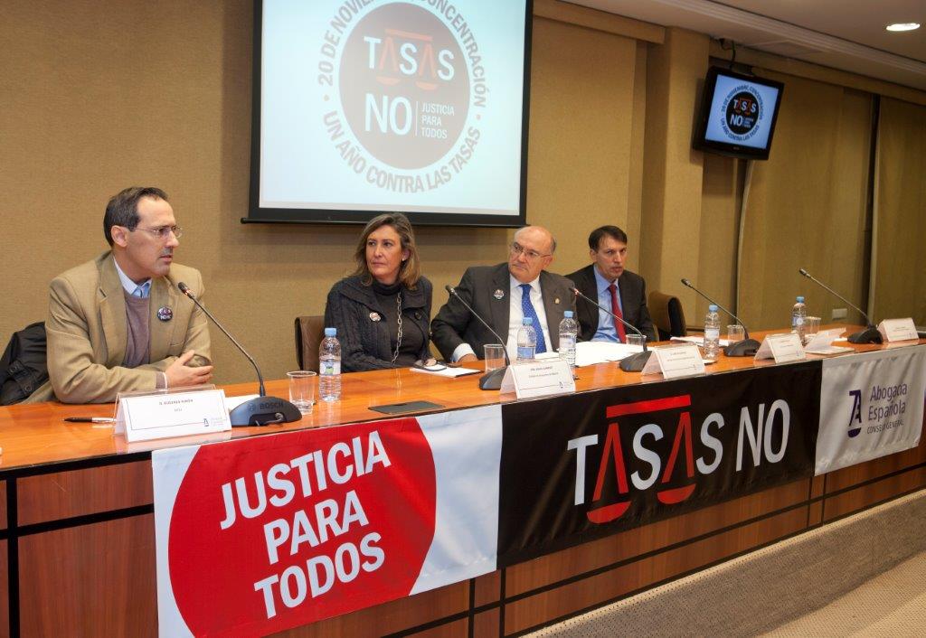 «El acceso a la justicia es el pilar de los demás derechos. Sin justicia no somos ciudadanos, sino súbditos y vasallos, por eso la lucha contra las tasas es la lucha de la sociedad civil, no solo de los operadores jurídicos», concluyó Ribón, que puso como ejemplo de personas que no pueden reclamar sus derechos por las tasas a afectados por preferentes, afectados por claúsulas suelo o accidentados de tráfico.