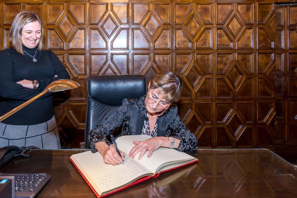 Victoria Ortega, la primera mujer que ostenta la presidencia del Consejo General de la Abogacía Española, fue recibida en el ayuntamiento por la alcaldesa de Sueca, Raquel Tamarit, y un nutrido grupo de representantes del Gobierno Local, donde firmó en el Libro de Oro de la ciudad. Tamarit, también la primera mujer alcaldesa de Sueca, aludió a la histórica excepcionalidad de género y mostró su deseo de que “dentro de nada eso no sea noticia”.