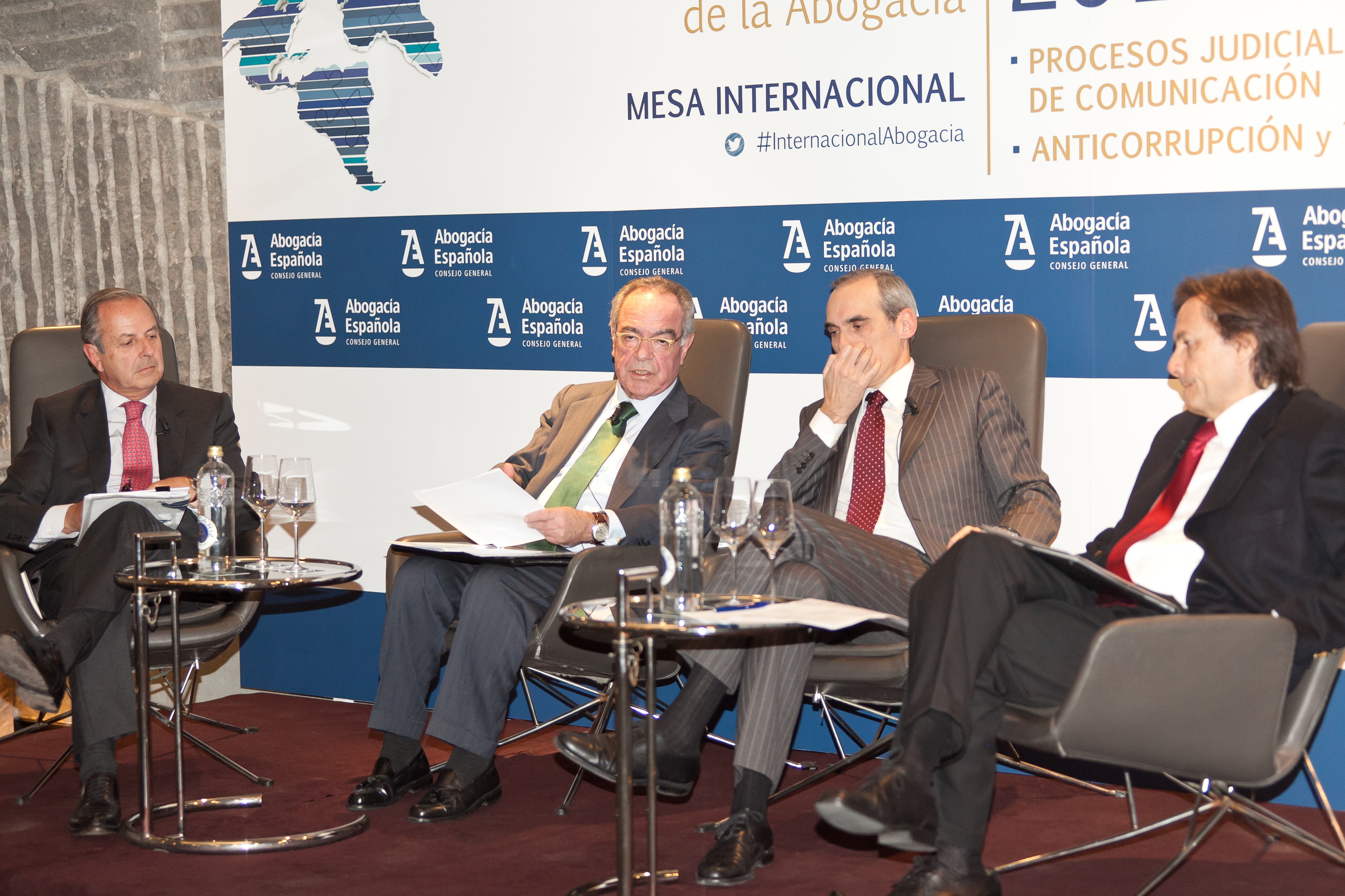La corrupción y las medidas para acatarla centraron el segundo debate de la Mesa de Internacional, celebrado en la tarde del 10 de diciembre, y que contó con la presencia de Jesús Lizcano, presidente de Transparencia Internacional -España (TI); Alejandro Luzón, fiscal anticorrupción; Sergio Urrejola, ex presidente del Colegio de Abogados y del Consejo de Estado de Chile, y Joaquín García-Romanillos, ex secretario general del Consejo General de la Abogacía y presidente de la Fundación Fernando Pombo, que ejerció como moderador.