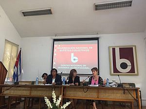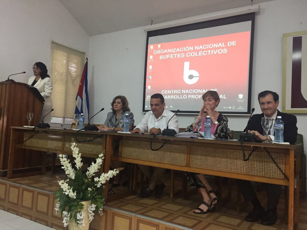 La ministra de Justicia de Cuba, María Esther Reus González, el presidente de la ONBC , Ariel Mantecón, y Victoria Ortega inauguraron las jornadas -respaldadas por la Oficina Económica y Comercial española en La Habana- en la que se abordaron temas como el ejercicio de la abogacía en Cuba y en España, la acceso a la Justicia Gratuita, la igualdad de oportunidades de la mujer en ambas abogacías o el marco jurídico de las inversiones extranjeras en Cuba.