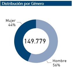 De la distribución por sexo de la población censada como abogados, el 44% son mujeres mientras un 56% son hombres. Entre los colegiados no ejercientes esta proporción se configura de forma inversa al ser el 56% las mujeres y el 44% hombres. Esta mayor presencia femenina entre los colegiados no ejercientes puede ser objeto de análisis y reflexión sobre el comportamiento de la mujer en el ámbito profesional y familiar