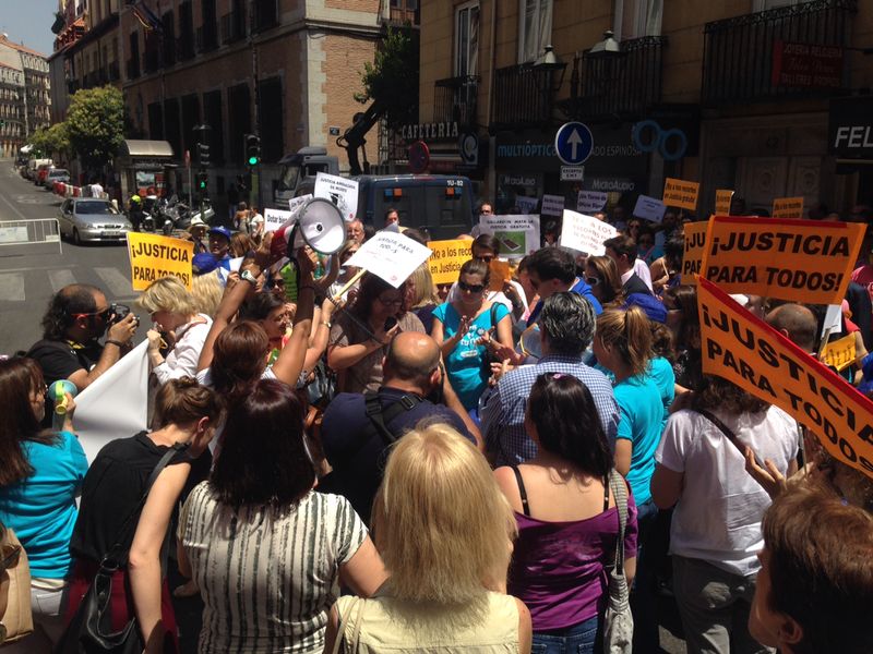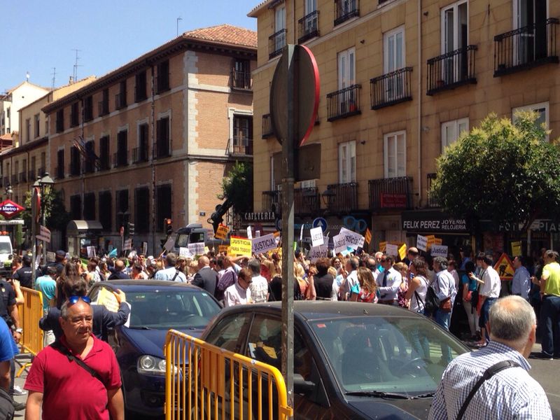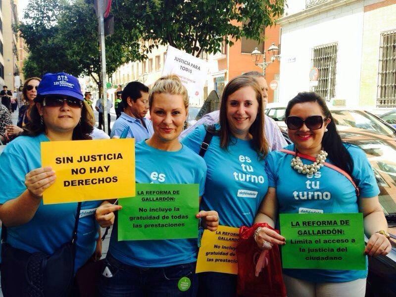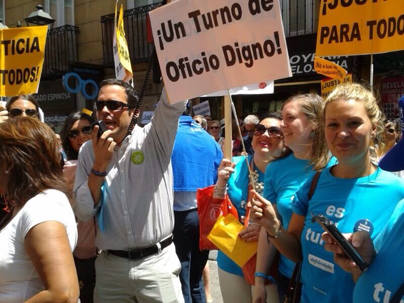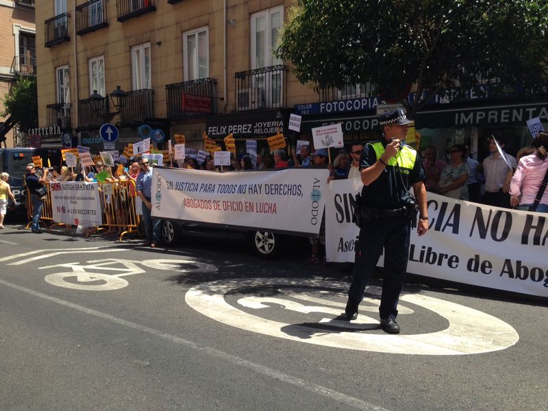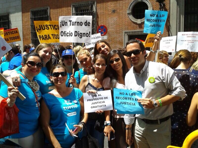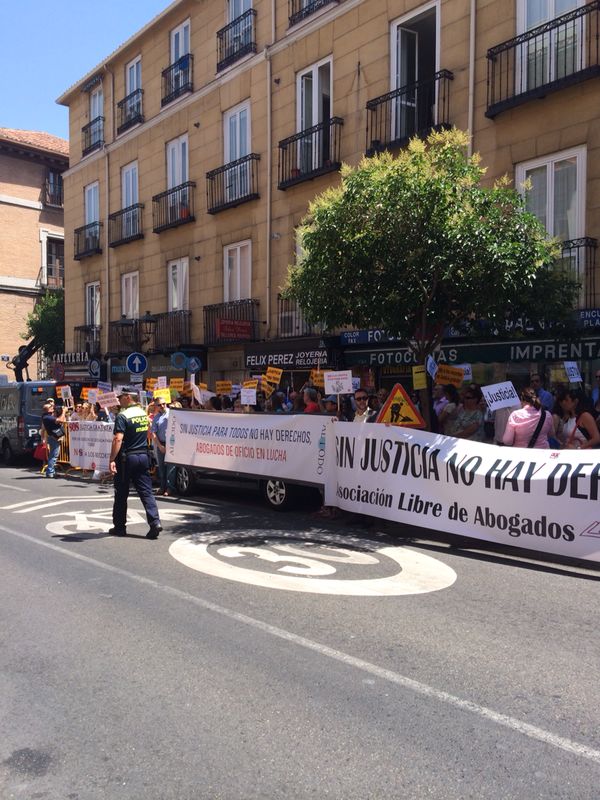 Abogados del Turno de Oficio se concentraron ayer , 17 de julio, frente al Ministerio de Justicia para manifestar su rechazo al proyecto de Ley de Justicia Gratuita y en defensa del turno de oficio. La manifestación, en la que participaron abogados de diversos puntos de España, fue convocada por la Asociación Libre de Abogados (ALA), Asociación Profesional de Abogados de Extranjería en Madrid (APAEM), Asociación de Abogados por un Turno de Oficio Digno (ALTODO), la Confederación Española de Abogados Jóvenes (CEAJ) y la Agrupación de Abogados Jóvenes de Madrid (AJA).