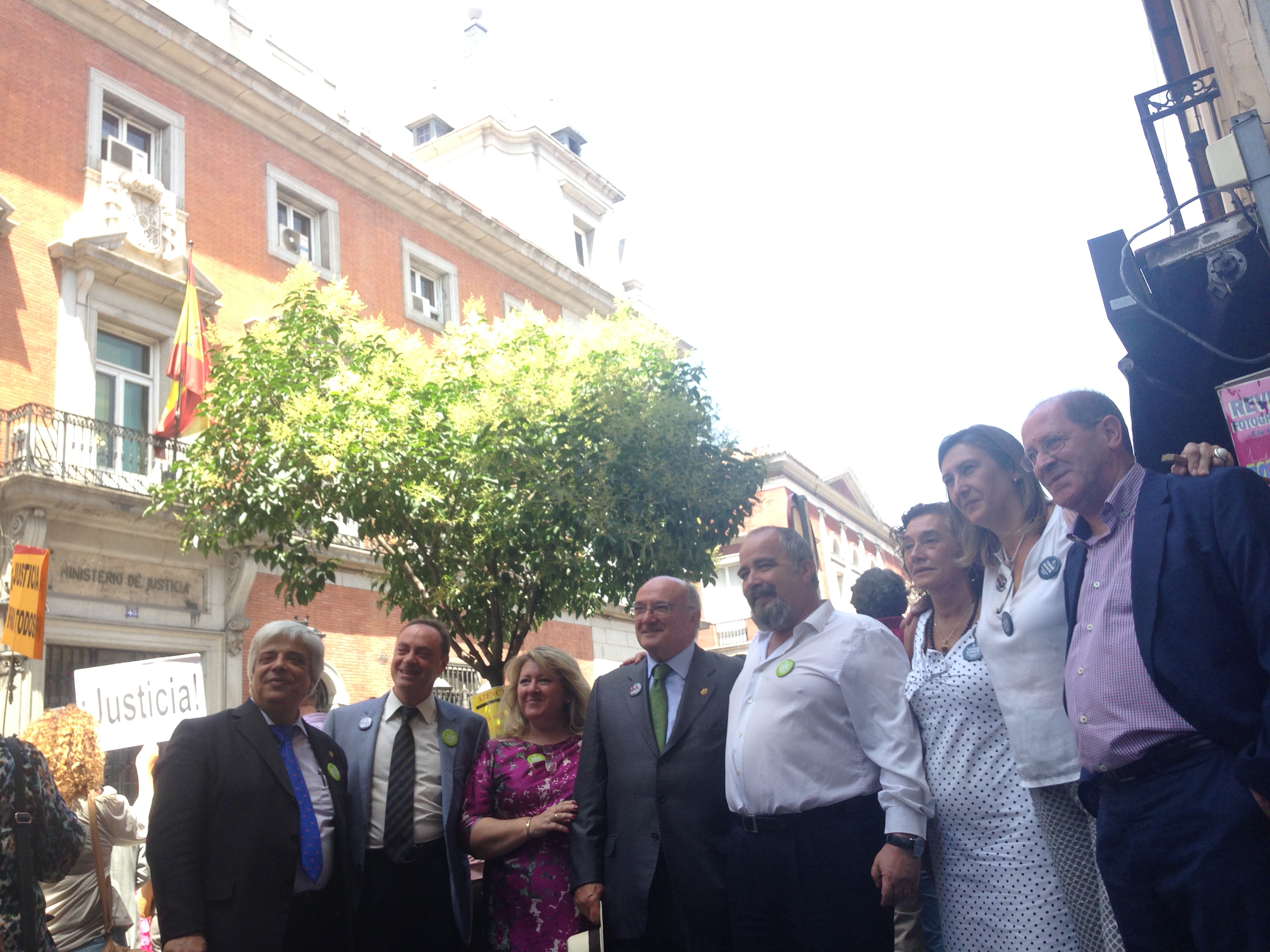El presidente del Consejo General de la Abogacía Española, Carlos Carnicer, también estuvo presente en la concentración frente al Ministerio de Justicia en la calle San Bernardo de Madrid para apoyar la Justicia Gratuita. Junto a él asistieron la decana del Colegio de Madrid, Sonia Gumpert; el decano del Colegio de Barcelona, Oriol Rusca; el decano de Zaragoza, Antonio Morán; la decana de Badajoz, Filomena Peláez; la decana de Gipuzkoa, Lurdes Maiztegui; el decano de Alcalá de Henares, Vicente Sánchez; el decano de Cartagena, José Muelas, y la secretaria de la Junta de Gobierno del Colegio de Madrid y consejera de la Abogacía Española, Carmen Pérez Andújar.