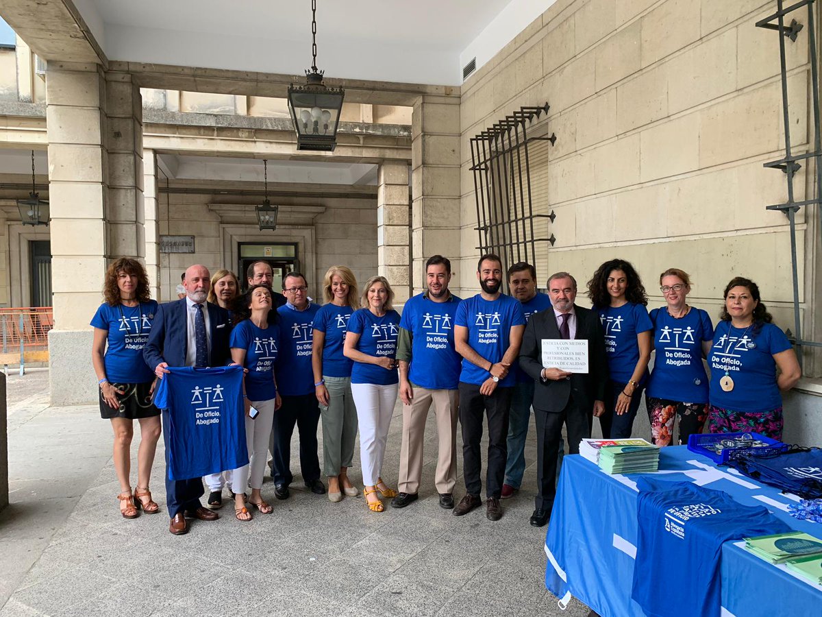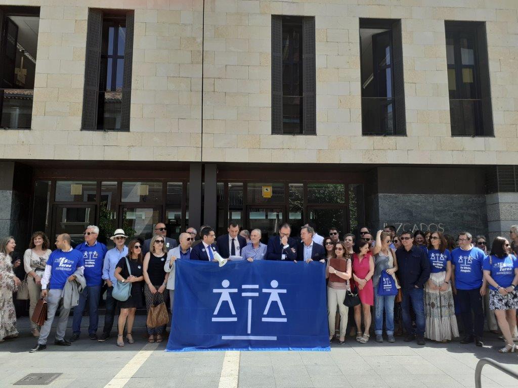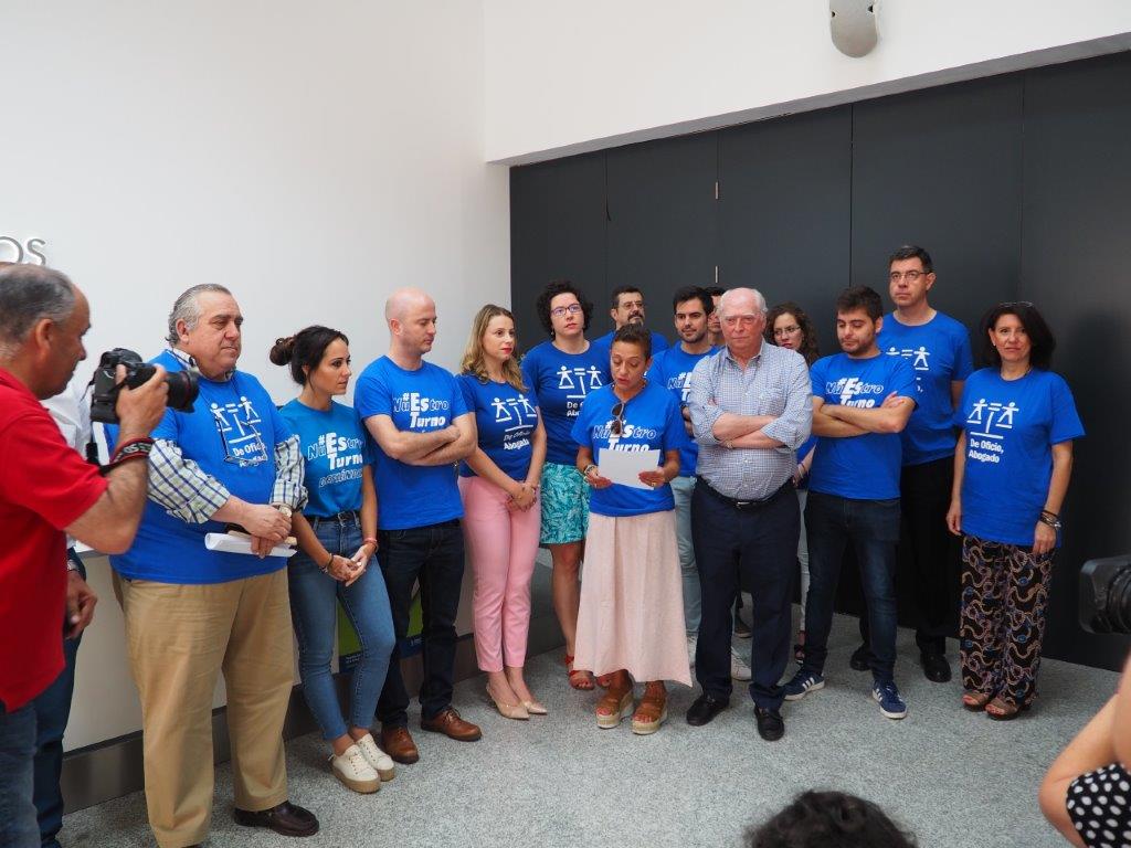 El Colegio de Abogados de Córdoba convocó el 12 de julio, a las 12.00h, a los abogados y abogadas del Turno de Oficio para reunirse en una concentración de protesta ante la situación en la que se ven obligados a prestar el Servicio de Asistencia Jurídica Gratuita. El decano del Colegio de Abogados de Córdoba, José Luis Garrido, y la diputada responsable de la Comisión de Turno de Oficio del Colegio de Abogados, Carmen Bohollo, ofrecieron primero, a las 11.30h, una rueda de prensa en el salón de actos de la sede colegial, donde expusieron detalladamente las reivindicaciones a plantear, y posteriormente, se celebró el acto reivindicativo en la entrada de la sede.