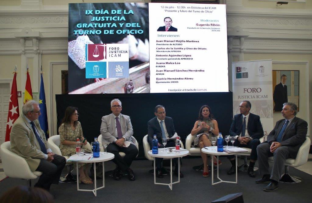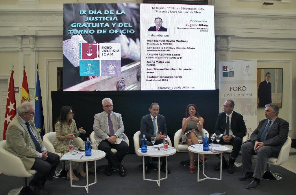 A partir de las 12.00h, y bajo el título “Presente y futuro del Turno de Oficio”, representantes de las distintas asociaciones del Turno participaron en una mesa redonda moderada por el diputado de la Junta de Gobierno del ICAM, Eugenio Ribón.