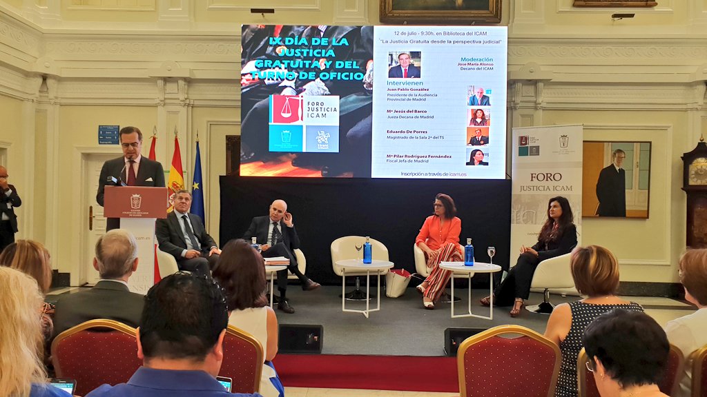 En el marco de los actos conmemorativos, el Colegio de Abogados de Madrid celebró el 12 de julio una jornada de debate con los principales operadores jurídicos de la región y una amplia representación de abogados y abogadas del Turno de Oficio. El encuentro arrancó a las 9.00h con la intervención del decano José María Alonso. Acto seguido, responsables de la judicatura y la fiscalía abordaron “La justicia gratuita desde la perspectiva judicial”.
