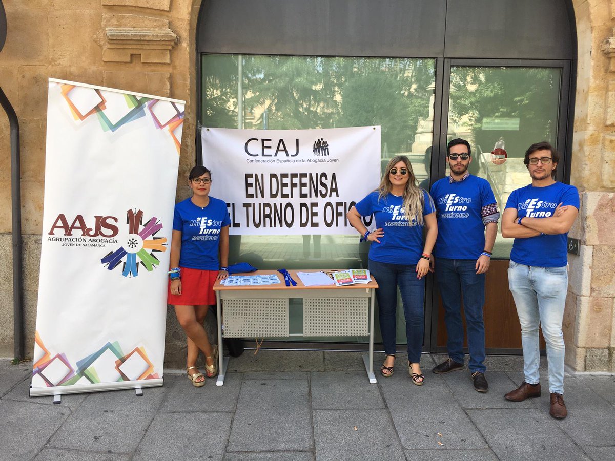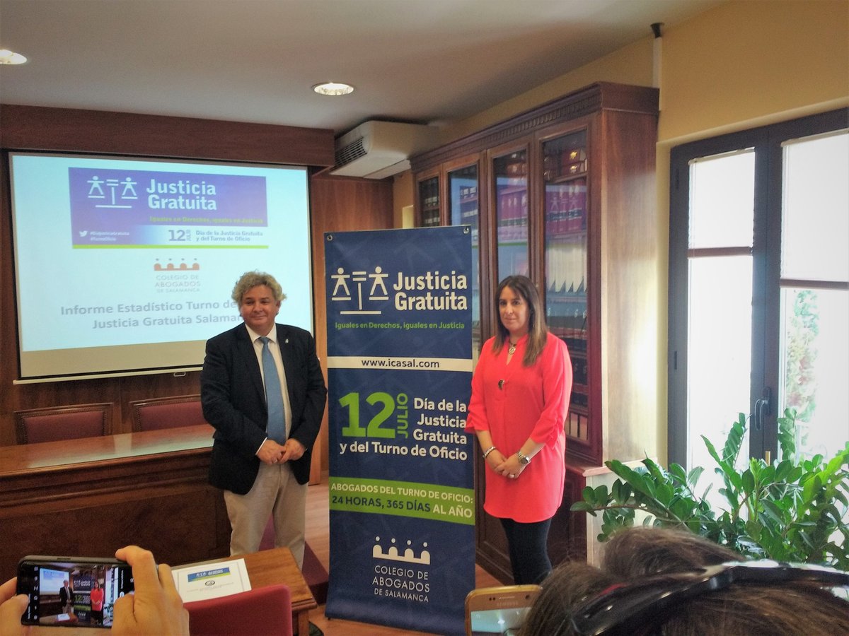 El Colegio de Abogados de Salamanca hizo pública, en la Biblioteca del Colegio, la exposición de datos estadísticos sobre la Justicia Gratuita y el Turno de Oficio de la demarcación colegial; a las 12.00h, se dio lectura al Manifiesto común en defensa del servicio del Turno de Oficio, así como al Manifiesto de la Abogacía Joven, para finalizar con el izado de bandera del Turno de Oficio en el Colegio. A las 19.00h, en el Jardín del Edificio de las Identidades, Torre del Clavero, se entregaron los diplomas en reconocimiento a los letrados que acreditan 25 años en el Servicio del Turno de Oficio. Además, coincidiendo con esta celebración, Alicia Vaquero, abogada encargada de tramitar el Turno de Oficio en el Colegio de Abogados de Salamanca durante 8 años recibió la Medalla al Mérito de la Abogacía otorgada por el Consejo de Castilla y León.