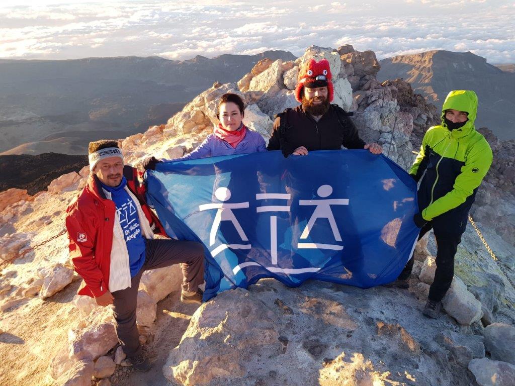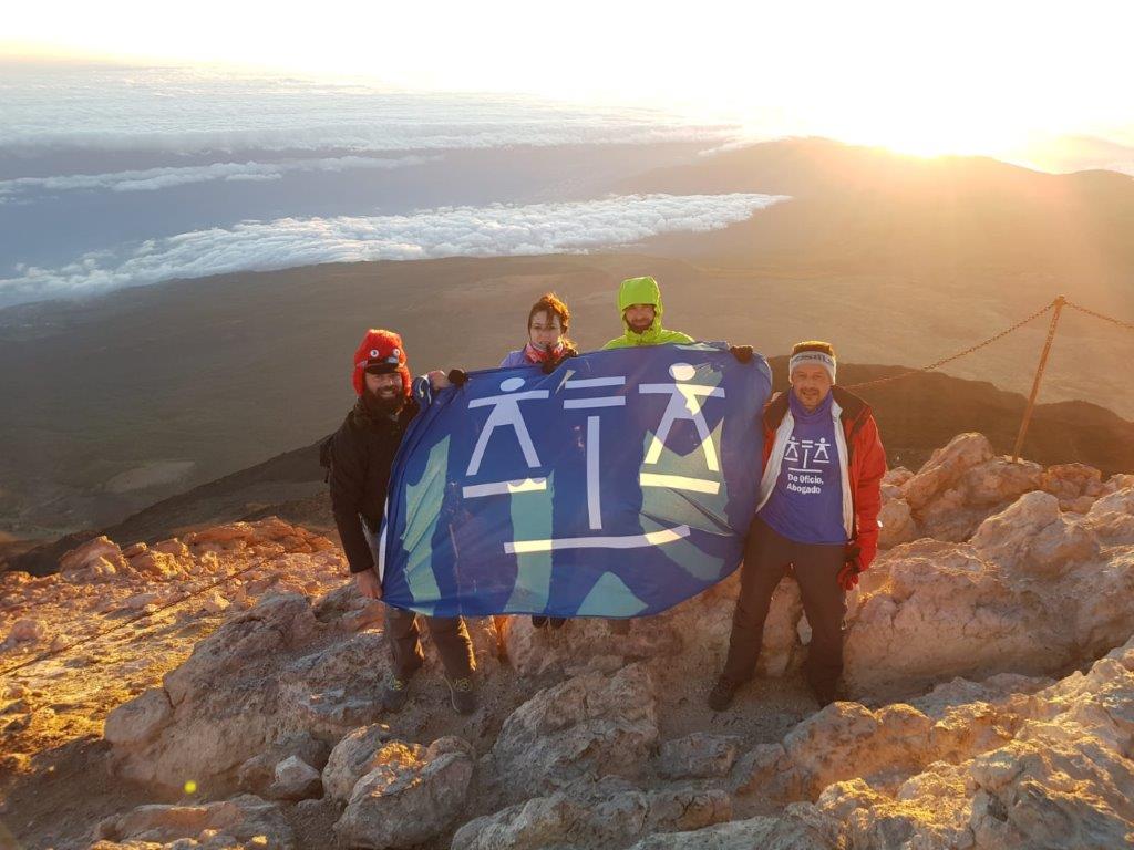 El Colegio de Abogados de Santa Cruz de Tenerife se marcó este año un reto histórico: elevar la bandera de la Justicia Gratuita al punto más alto de España. Encabezados por el presidente del Turno de Oficio, Jonay Ríos Torres, un grupo de abogados del Turno de Oficio del ICATF ascendieron al pico del Teide portando la bandera del Turno de Oficio para poner en valor el esfuerzo que realizan cada día los profesionales que llevan a cabo la labor de acercar la Justicia a todos los ciudadanos. El grupo inició la ascensión el martes 9 de julio, para llegar al refugio y pernoctar esa noche. Al día siguiente, de madrugada, acometieron la ascensión definitiva para que, al amanecer, ondeara la Bandera del Turno de Oficio en el punto más alto de nuestro país.