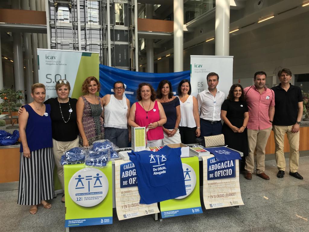 El Colegio de Abogados de Valencia, junto con la AJA Valenciana y la Sección de Turno de Oficio del Colegio, instalaron una Mesa informativa en la Ciudad de la Justicia de Valencia desde las 9.30h, en la que estuvieron presentes los miembros de la Junta de Gobierno responsables del Área del Turno de Oficio.