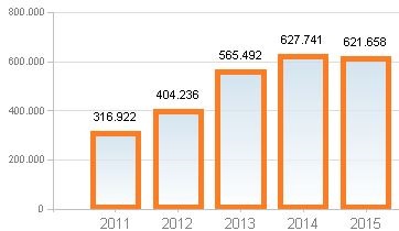 - El uso de esta herramienta tecnológica por los ciudadanos se mantiene estable al disminuir el 1% con respecto a 2014, cuando se gestionaron 627.741 solicitudes