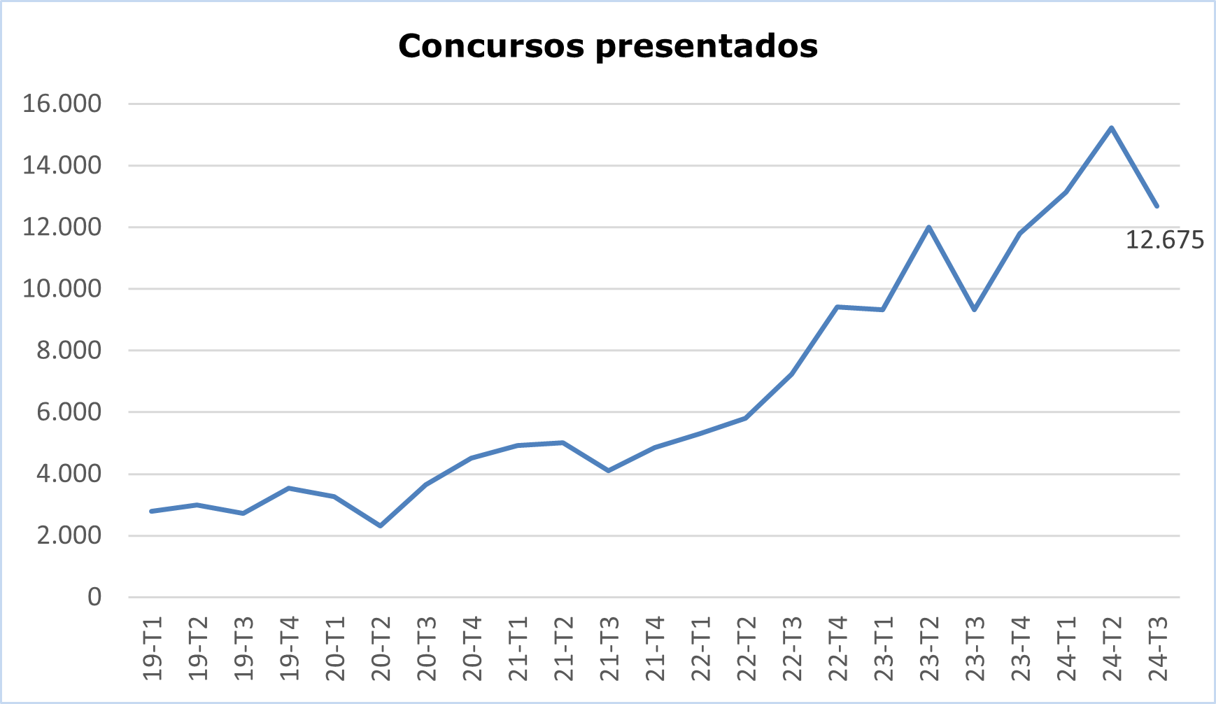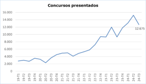 Los concursos presentados ante los Juzgados de lo Mercantil continuaron en el tercer trimestre de 2024 la tendencia al alza iniciada en 2020, registrándose un total de 12.675, según las cifras del Consejo General del Poder Judicial.