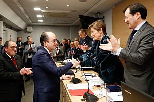 Los decanos del Colegio de Abogados de Alzira, Agustín Ferrer Olaso, del Colegio de Abogados de Cáceres, Juan José Flores Gómez y del Colegio de Abogados de Granada, Leandro Cabrera Mercado, han tomado hoy posesión como nuevos consejeros del Consejo General de la Abogacía Española, en el Pleno celebrado en la sede de la Abogacía Española en Madrid.