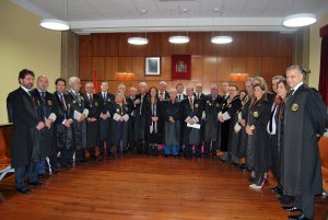 La ceremonia, que ha tenido lugar en la sala de vistas de la Audiencia Provincial de Jaén, ha sido presidida por el decano de la institución colegial, Vicente Oya y el presidente de la Audiencia Provincial de Jaén, Rafael Morales, que han estado acompañados del presidente del Consejo Andaluz de Colegios de Abogados, Pascual Valiente; el fiscal jefe de la Audiencia Provincial, Carlos Rueda y el decano del Colegio de Procuradores de Jaén, José Ramón Carrasco. El evento ha contado además con la presencia de numerosas autoridades de la provincia como la subdelegada del Gobierno en Jaén, Catalina Madueño; la delegada de Turismo, Regeneración, Justicia y Administración Local de la Junta de Andalucía en Jaén, Raquel Morales; la vicepresidenta tercera de la Diputación de Jaén, África Colomo; o la concejala de Igualdad, Participación Ciudadana del Ayuntamiento de Jaén, Pilar Funes, entre otras.