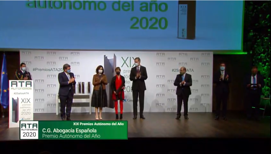 La XIX edición de los Premios de la Asociación de Trabajadores Autónomos (ATA) ha reconocido este año a la Abogacía Española por el trabajo que abogados y abogadas han desarrollado durante la pandemia del Covid-19.
