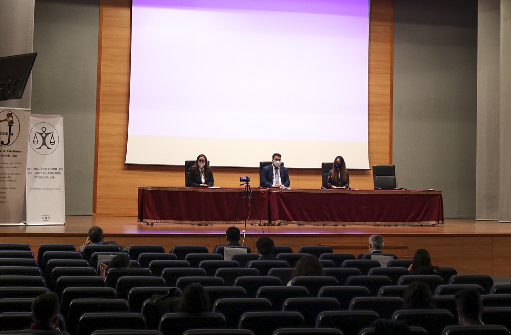El Grupo de Abogados Jóvenes (GAJ) de Jaén y la Universidad de Jaén (UJA) han organizado hoy las Jornadas Profesionales sobre Derecho de Familia, que han tenido lugar en el Aula Magna de la UJA. La jornada se ha desarrollado con todas las medidas de seguridad necesarias y con la presencia de 120 estudiantes de Derecho y letrados jiennenses, a la vez que también ha podido ser seguida por streaming. La actividad ha sido inaugurada por Maia Román, presidenta de la Confederación Española de la Abogacía Joven; Juan Sebastián Morales, presidente del GAJ Jaén, y Enara González, presidenta de la Asociación de Estudiantes de Derecho de Jaén.