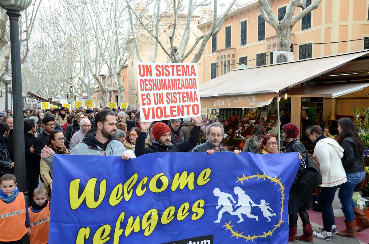 Más de 300 personas secundaron el sábado, 27 de febrero, la manifestación convocada por la Comisión de Derechos Humanos del Colegio de Abogados de Baleares para adherirse a la Marcha Europea por los Derechos de los Refugiados que, bajo el lema ¡Pasaje Seguro YA!, se celebró en diversas ciudades españolas y europeas.