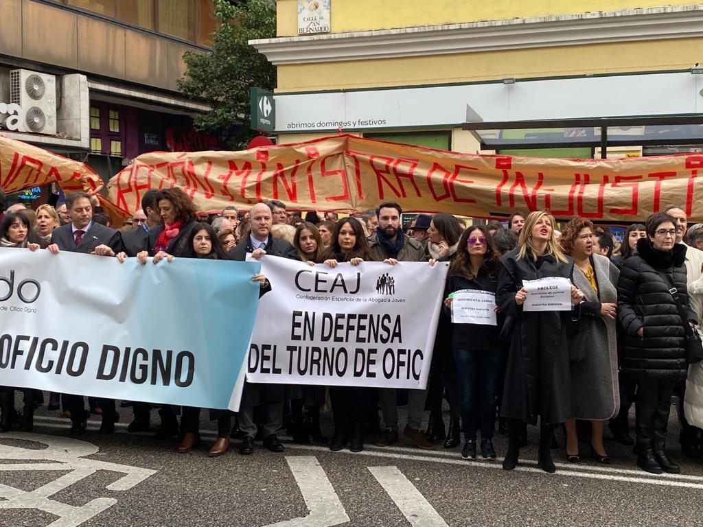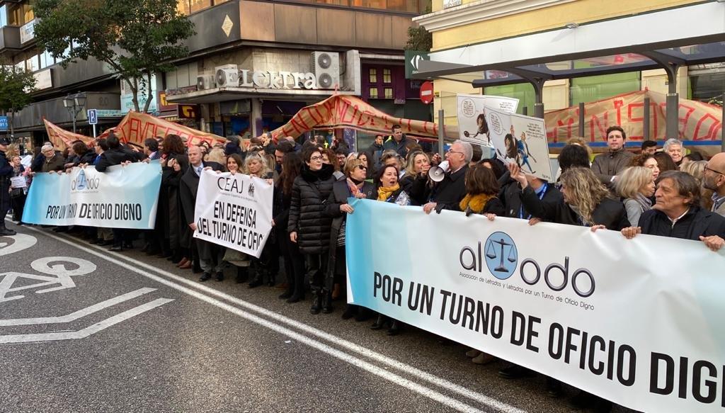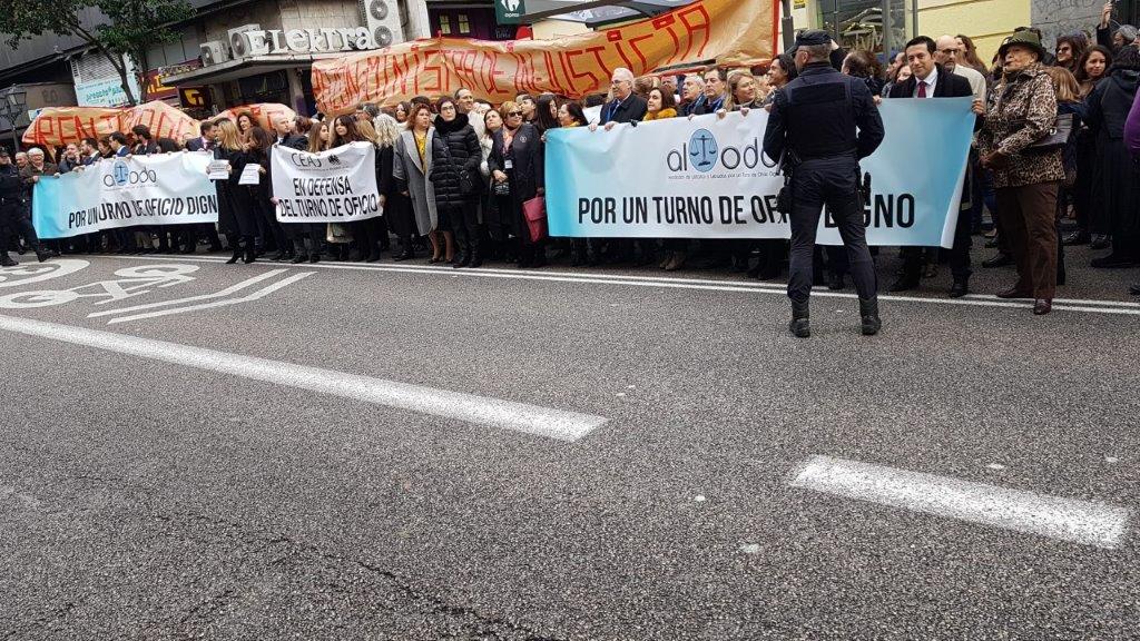 La concentración ha sido convocada por la Asociación de Letrados por un Turno de Oficio Digno (ALTODO), donde se ha leído un manifiesto que exige al Ministerio de Justicia y a todos los partidos políticos «la inmediata puesta en marcha de una reforma normativa que garantice el pago de los abogados designados de oficio de toda actuación».