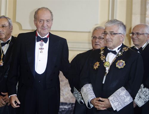 El presidente del Supremo ha tomado este martes la palabra tras la intervención del fiscal general del Estado, Eduardo Torres-Dulce, en el acto de apertura de los tribunales que ha estado presidido por el Rey Juan Carlos, quien ha subido en ascensor hasta el Salón de Plenos en lugar de hacerlo por la escalinata que llega hasta la sala de ceremonias. Su Majestad se ausentó el pasado año por motivos de salud tras 28 años de asistencia.