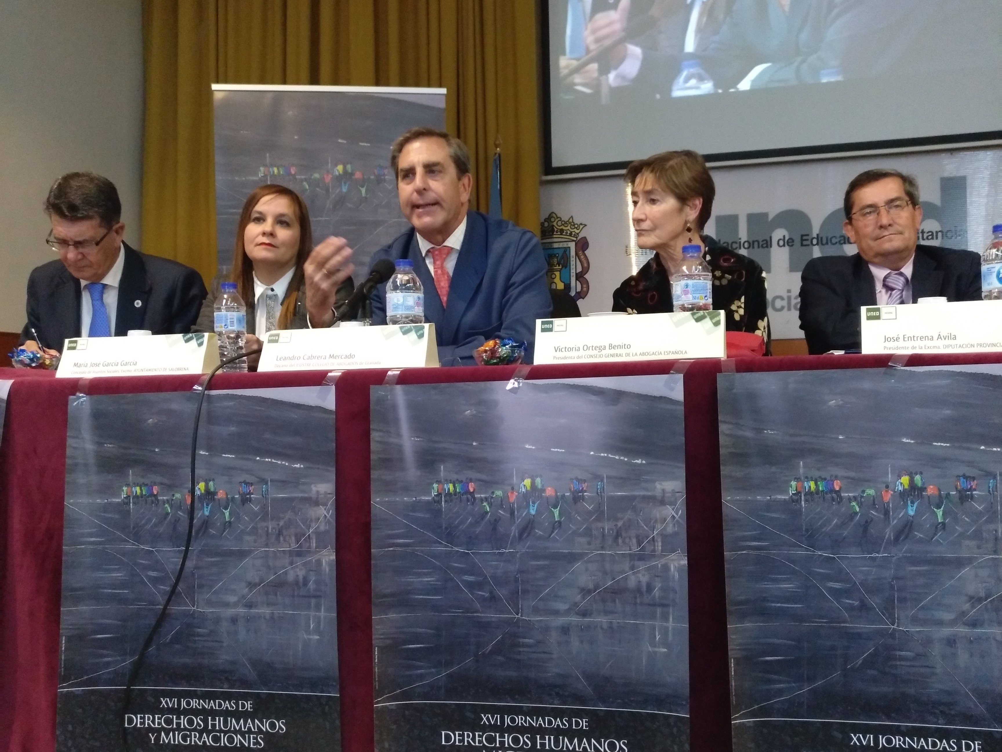 Este evento, organizado por la Asociación Derechos Humanos e Inmigración de Motril, Jueces y Juezas para la Democracia, la Fundación Abogacía Española y por la Cátedra UNESCO de Educación Ambiental y Desarrollo Sostenible de la UNED, y en el que colabora el Colegio de Abogados de Granada, ha sido inaugurado esta mañana en un acto al que han asistido, por parte de la Abogacía Española, la presidenta del Consejo General, Victoria Ortega, y el decano del Colegio de Abogados de Granada, Leandro Cabrera, entre otras autoridades. “Debemos transitar desde un concepto de seguridad nacional y de fronteras, predominante hoy, a un concepto de seguridad humana y jurídica de los migrantes, un tipo de seguridad basada en la protección de sus derechos, y que tenemos que propiciar los operadores jurídicos”, ha señalado la representante de la Abogacía Española. Por su parte el decano del Abogacía granadina ha insistido en la necesidad de que “los letrados granadinos que asisten a los migrantes no solo han de llevar a cabo esa labor como una obligación legal o burocrática, sino que tienen que ser conscientes de que a esas personas se les ha de mirar a los ojos y transmitirles nuestra solidaridad, ayuda y apoyo moral, porque cada una de ellas es víctima de un tremendo drama humano que de alguna manera hemos de ayudar a mitigar”.