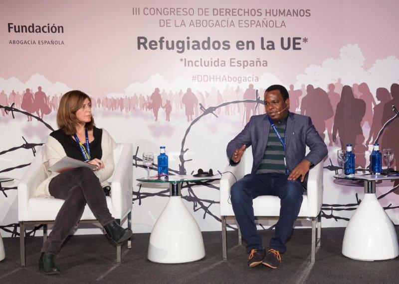 La sesión del 15 de diciembre arrancó con los testimonios en primera persona de Sam Safadi, refugiado sirio-palestino, y Ali Amadou, refugiado centroafricano, en una moderada por la periodista Minerva Oso, que se destacó que las cifras de refugiados en 2016 son dramáticas y se preguntó “¿Dónde está Europa? ¿Dónde está la política común de asilo?”. Tras ver un vídeo sobre la vida en distintos campos de refugiados, Sam Safadi y Ali contaron sus historias. Sam Safadi, era informático y un ciudadano normal antes de que estallara la guerra en Siria. Llegó a España en febrero de este año, pasando por Argelia y por Marruecos, en un viaje de diez días en condiciones precarias, siendo torturado y maltratado por la policía de Marruecos. Una vez en Melilla, le denegaron el asilo y pasó dos meses y medio en el CETI, donde algunos funcionarios les trataron con racismo. Ahora está en la Península, donde ha vuelto a solicitar asilo y está a la espera de la respuesta. “Quiero quedarme en España, aprender español y seguir mi vida como una persona normal”, concluyó. Por su parte Ali Amadou, huyó de la guerra civil centroafricana con su familia y llegó a España desde Israel. Les concedieron la protección internacional tras dos años y medio, algo que achaca a la discriminación por nacionalidad. Para él “la vida como solicitante de asilo es muy difícil” y encuentra que su futuro está en su país, donde piensa volver algún día.