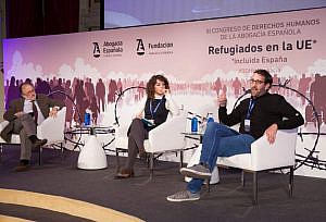 La última mesa del Congreso se centró en la defensa de los refugiados, con especial atención a la labor de los colegios, y contó con la participación de Marta García, oficial de protección de ACNUR; Sonia Gumpert, decana del Colegio de Abogados de Madrid; y Oriol Rusca, jefe de la delegación española en el Consejo de la Abogacía Europea (CCBE) y decano del Colegio de Abogados de Barcelona, moderados por Blas Jesús Imbroda, presidente de la Subcomisión de Extranjería y Protección Internacional del Consejo General de la Abogacía y decano del Colegio de Abogados de Melilla, que lamentó la ausencia de un representante del Ministerio del Interior en el panel pese a que se les había invitado. Además, Imbroda señaló que la Abogacía institucional debe garantizar que se protejan los derechos de los refugiados y que tengan asistencia jurídica.