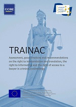 Tras la finalización del Proyecto sobre Garantías Procesales en la UE, conocido como TRAINAC , el Consejo de la Abogacía Europea, CCBE, ha hecho público su informe final en el que se evalúa la implementación de las tres Directivas sobre garantías procesales aprobadas hasta la fecha: 1. Por un lado, la Directiva sobre derecho a la traducción e interpretación en los procesos penales y los procedimientos correspondientes a la ejecución de una orden de detención europea; 2. Por otro lado, la Directiva que establece normas relativas al derecho de las personas sospechosas o acusadas a recibir información sobre sus derechos en los procesos penales y sobre las acusaciones formuladas contra ellas, así como el derecho a la información sobre sus derechos de las personas objeto de la ejecución de una orden de detención europea; y por último 3. La Directiva sobre el derecho de acceso a un abogado que establece normas mínimas relativas a los derechos de sospechosos y acusados en procesos penales y de las personas que sean objeto procedimientos de la orden de detención europea a ser asistidos por un letrado.