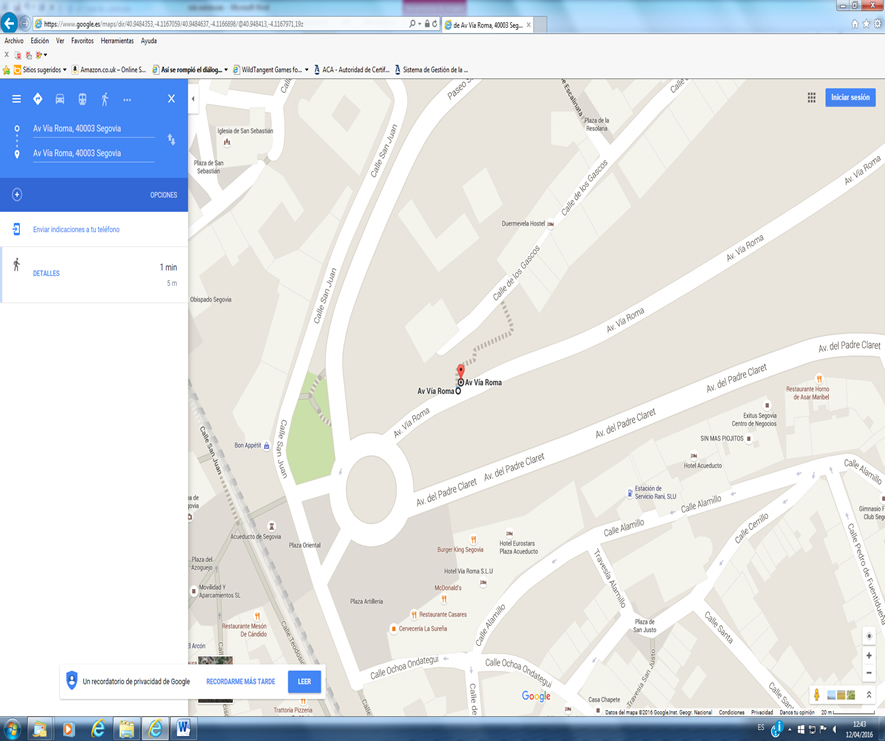 RUTA 1: Hacia las 15:00 horas, Desde el Parador a Hotel Puerta de Segovia, Venta Magullo, Vía Roma (junto al Acueducto*), Hotel Cándido.