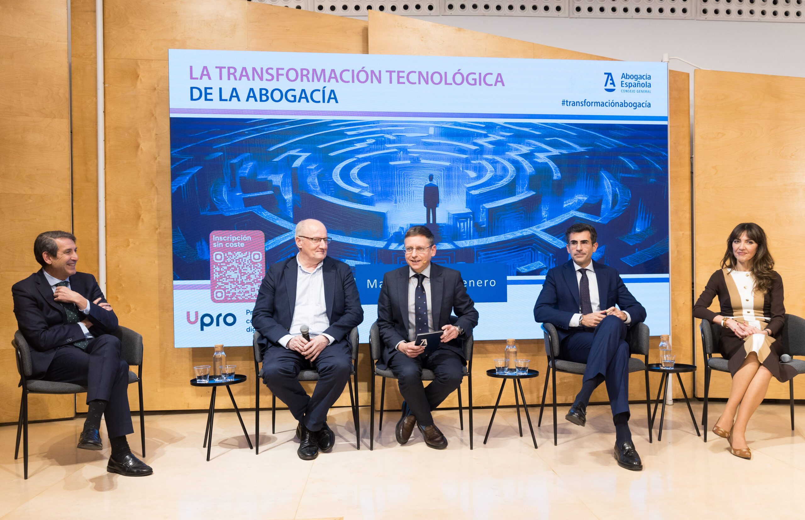 La jornada comenzó con una mesa redonda sobre las competencias digitales en la abogacía. Alfredo Sánchez-Rubio, coordinador del Programa Upro en Competencias Digitales de la Abogacía subrayó la urgencia del cambio tecnológico en la profesión: «Esto no es una opción, sino una necesidad”. María Luisa García, abogada y docente especializada en innovación legal, destacó cómo la digitalización está impactando en la práctica jurídica.