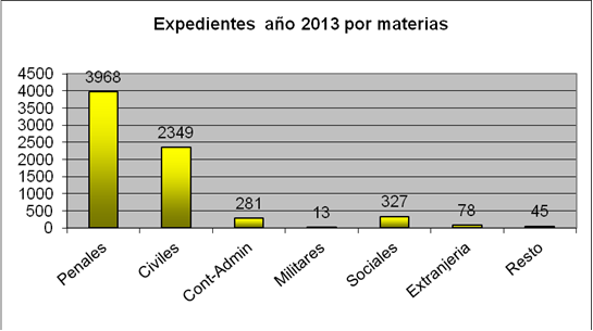 Si bien es prácticamente idéntica la estadística total, resulta significativo, sin embargo, el descenso producido en el ámbito penal, que se ha visto compensado con el aumento en el resto de jurisdicciones.