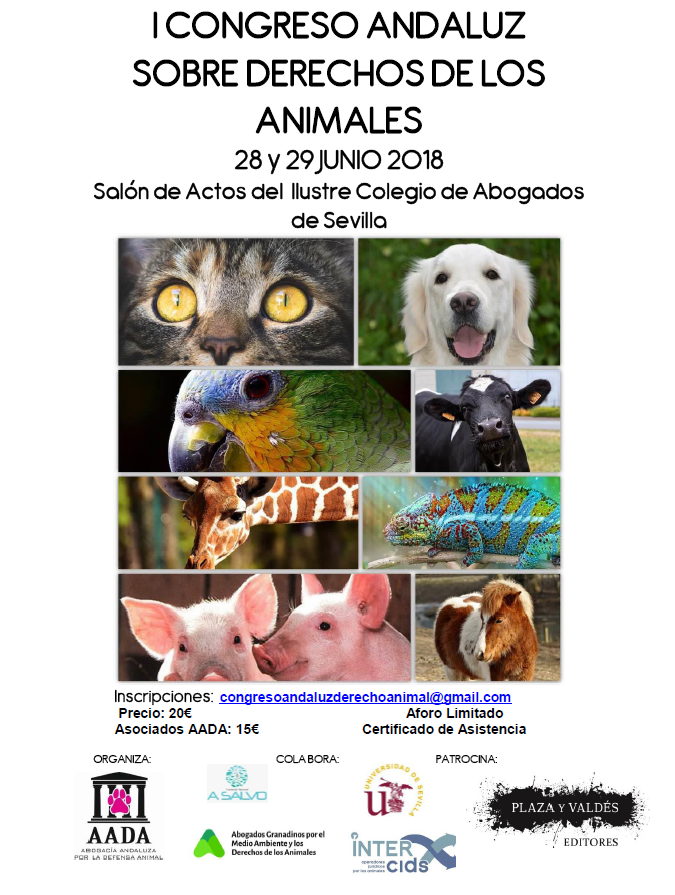 El salón de actos del Colegio de Abogados de Sevilla será el escenario del I Congreso Andaluz sobre Derechos de los Animales, organizado por la Asociación Andaluza de Derecho Animal (AADA), que tendrá lugar los días 28 y 29 de junio.