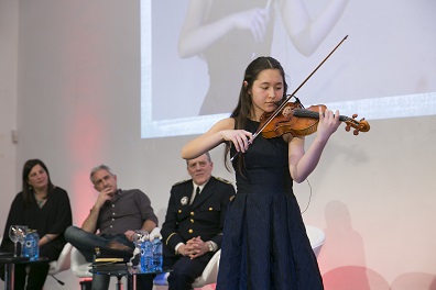Al final del acto, los asistentes disfrutaron de la actuación de Kaori López Shinohara, de tan solo 15 años, alumna del Centro de Estudios Musicales Katarina Gurska, que en 2017 ganó el Premio de Jóvenes Intérpretes en Cuenca y que a primeros de diciembre se llevó el Premio Cidade de Vigo, entre otros galardones que ya ha conseguido en su corta carrera. La joven interpretó al violín de forma magistral la pieza “Tzigane” (“Gitano”), de Maurice Ravel.